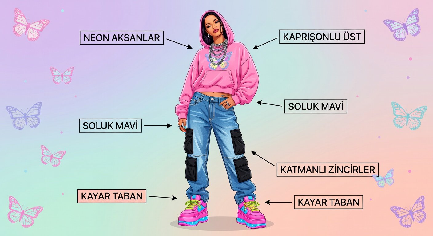 - Alt: Düşük bel jean veya cargo pantolon.